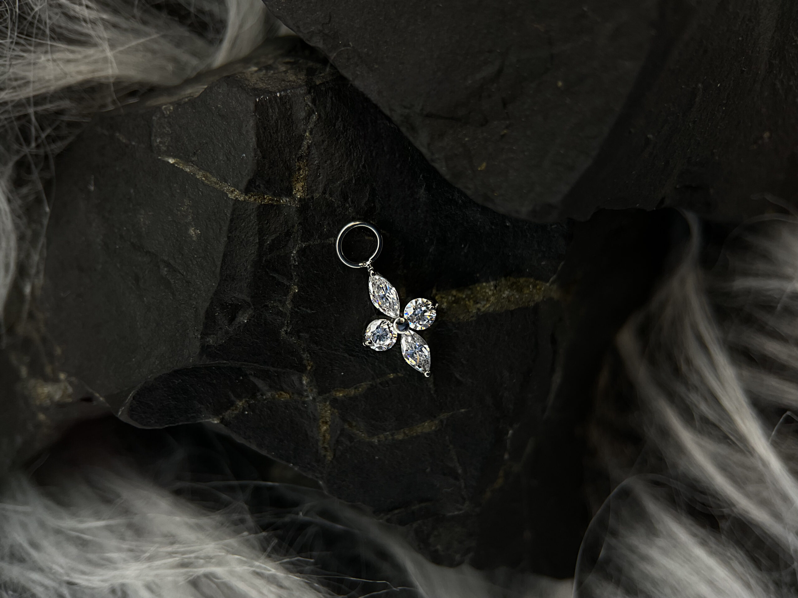 Elegancka zawieszka w kształcie delikatnego kwiatka, zdobiona lśniącymi cyrkoniami. Wykonana z wysokiej jakości tytanu, łączy subtelność z trwałością, co czyni ją idealnym dodatkiem do każdego rodzaju biżuterii. “Crystal Bloom” jest symbolem delikatności i naturalnego piękna, który doda blasku każdej stylizacji.
