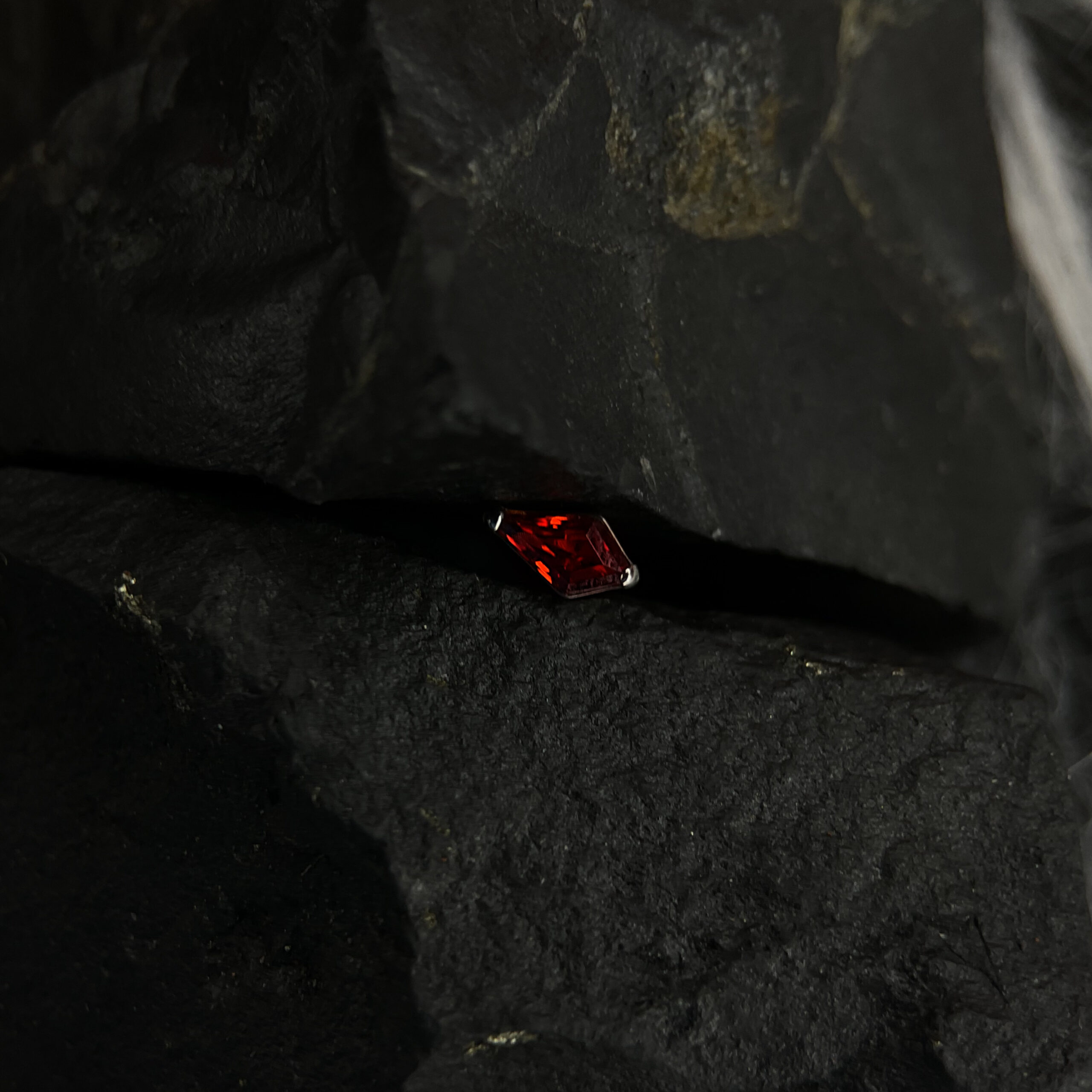 Scarlet Diamond to elegancki i odważny kolczyk, wyróżniający się intensywnie czerwonym kamieniem w kształcie diamentu. Kamień osadzony w minimalistycznej oprawie z tytanu, dodaje nuty luksusu i tajemniczości, przyciągając uwagę swoją głębią barwy i połyskiem. Idealny dla osób, które cenią sobie subtelną, ale wyrazistą biżuterię.