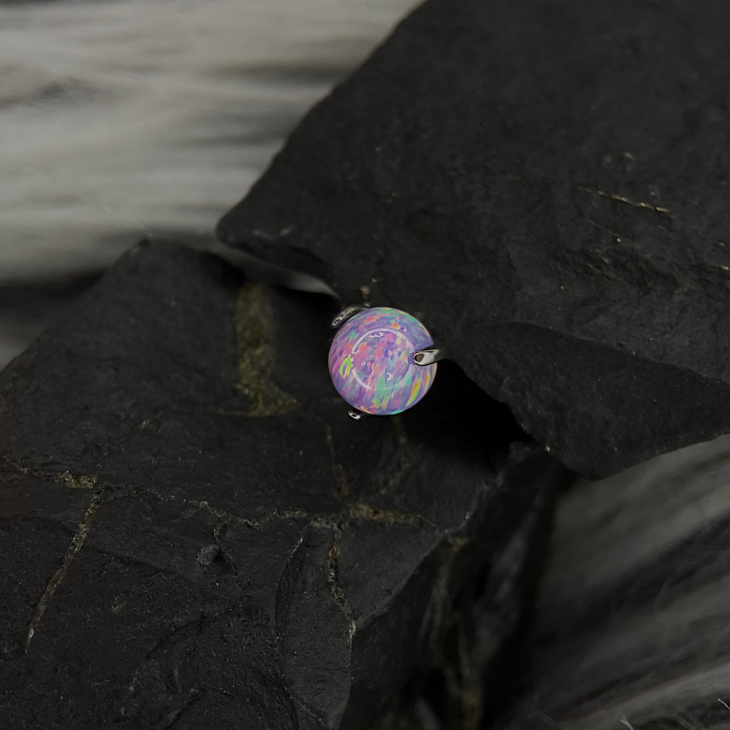 Unikalna nakrętka w kształcie opalizującego dysku przypominającego UFO. Opal w subtelnej oprawie mieni się wielobarwnymi refleksami, przyciągając wzrok i dodając charakteru każdej stylizacji. Solidne wykonanie z tytanu zapewnia trwałość i komfort noszenia.